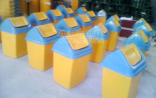 四川瀘州采購欣方圳A10玻璃鋼搖蓋垃圾桶規 格為:400*500*800mm,用在企業的工業園區內,擺在兩旁路邊。玻璃鋼垃圾桶分上蓋,下桶及內桶三部分組成。玻璃鋼垃圾桶桶身是橙色,桶中間絲 印有“講究衛生,人人有責”標語。內面還有一個內膽也是橙色,玻璃鋼工藝內膽比較粗燥,不影響美觀。上蓋由橙色,藍色兩種顏色組成,中間的垃圾口投遞處是 搖蓋遮擋,風吹日曬雨淋不著。五年以上的熟練老員工。優質玻璃纖維與進口樹脂著色合成,采用模具一次成型。玻璃鋼造型精美,潔凈,美觀、醒目、不退色,它 具有強度高、耐腐蝕、耐酸堿、抗老化、太陽暴曬下 不變形、抗紫外線、操作方便等特點是其他材質無法取代的。 街道玻璃鋼垃圾桶更具有一大優點,針對盜竊的人員來說,毫無利用價值!