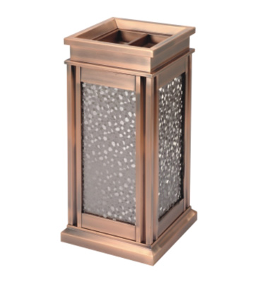 欣方圳為深圳嶺南天潤物業公司提供了一批室內垃圾桶,材質有鈦金類和鐵板噴塑類,外觀精美,使用價值高。 D272皇家座地煙灰桶規格:300*300*685,D295垃圾桶的規格為310*310*740,采用不銹鋼經鍍鈦處理,專業除