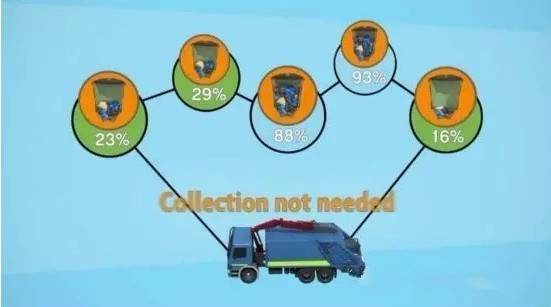 Enevo ONe作為一個(gè)基于超聲波傳感器的廢物回收系統(tǒng)。傳感器將收集到的垃圾箱和垃圾回收地的傳感數(shù)據(jù)通過(guò)低功耗的LoRa網(wǎng)絡(luò)傳輸?shù)綌?shù)千米外的LoRa基站,再傳送到服務(wù)器。通過(guò)分析這些數(shù)據(jù),垃圾管理者能更直觀的了解轄區(qū)內(nèi)各個(gè)垃圾桶的填充狀態(tài),并為清潔的車輛規(guī)劃最佳的回收路線,從而節(jié)省環(huán)衛(wèi)機(jī)構(gòu)的運(yùn)營(yíng)成本。