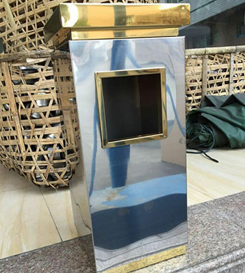 欣方圳專業生產座地煙灰桶,車間有數控折彎機、數控沖床、滾圓機、數控車床、激光切割機、送樣機、鏜床、二保焊機等行業先進設備。