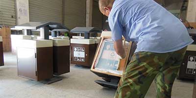 F139戶外鋼板四分類垃圾桶