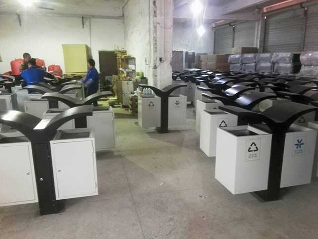 欣方圳鋼制戶外垃圾桶均選用優質的冷軋鋼板經噴砂處理去油去銹后,鋼板表面抗紫外線丙稀酸油漆多層噴涂,
