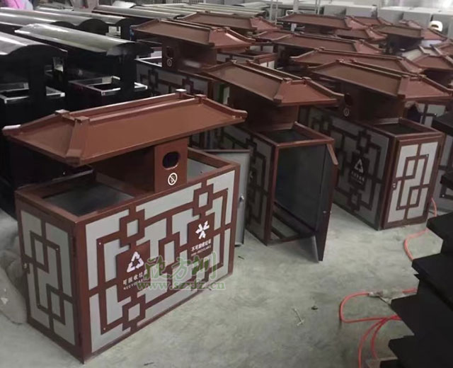 中國風戶外鋼制分類垃圾桶工廠批量生產圖