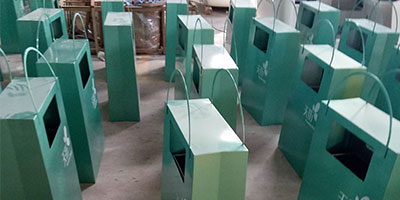 • 產品材質:手提袋鋼制垃圾桶采用優質冷軋鋼經除油-除銹-表調-磷化處理后,表面采用汽車靜電粉末噴漆工藝,噴塑粉主要有丙烯酸粉末、聚酯粉末等。雙層防銹,漆面色澤耐久;