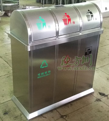 • 使用范圍:不銹鋼三分類搖蓋垃圾桶表面光滑、亮麗,是電梯口、寫字樓、學校、物業、賓館、酒店、機場、汽車站等擺放的首選。