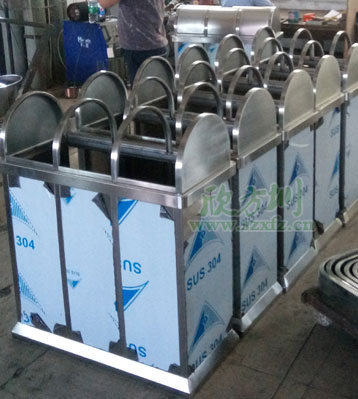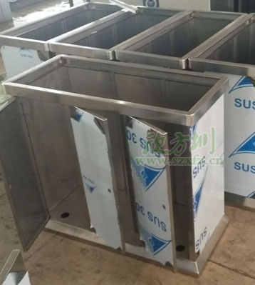 欣方圳不銹鋼三分類搖蓋垃圾桶工廠生產圖
