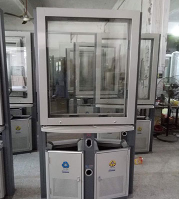 欣方圳專業生產戶外廣告垃圾桶,車間有數控折彎機、數控沖床、滾圓機、數控車床、激光切割機、送樣機、鏜床、二保焊機等行業先進設備。