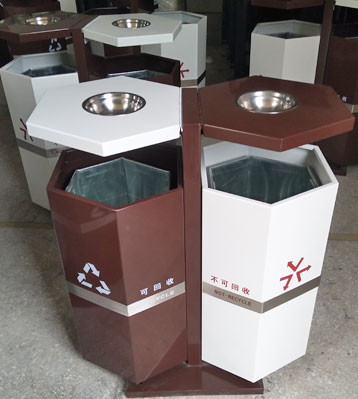 戶外六角鋼制分類垃圾桶桶頭圖