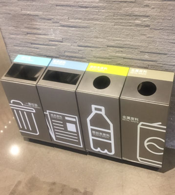 欣方圳商場不銹鋼室內(nèi)滑軌四分類果皮箱批量生產(chǎn)圖