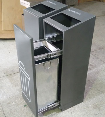 四分類果皮箱導(dǎo)軌推拉打開桶門!