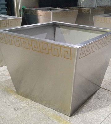 • 產品材質:不銹鋼方錐形大花箱可采用5mm加厚201#/202#/304#不銹鋼材料模壓或焊接成型,金屬亮澤,內外表面光潔,易于清潔,表面可做電鍍壓紋、水鍍、蝕刻、納米鎳、無氰堿性光亮鍍銅工藝效果,無指紋處理高檔大氣;
