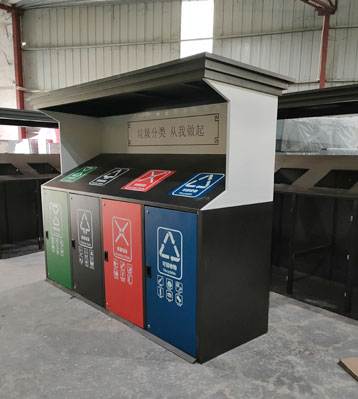 • 產品材質:城市花園小區大容量分類垃圾桶定點投放垃圾屋房站點整體尺寸制作需求可按地方標準要求定制,常用的制作材質有鍍鋅板、不銹鋼、戶外塑粉靜電噴涂,其工藝特點表現為較高的戶外適應性,表面涂層堅固,不易脫落,抗紫外線以及耐候性強??苫厥瘴锿犊跒樗{色,其他垃圾為淺灰色,廚余垃圾綠色,有害垃圾為紅色,顏色搭配美觀,可配套洗手盆投放后清洗。.表面無毛刺、無披鋒,棱角和邊緣做圓角處理.
