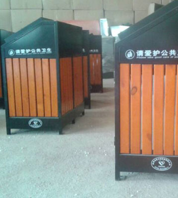 欣方圳戶外廣場(chǎng)鋼木分類垃圾桶原材料