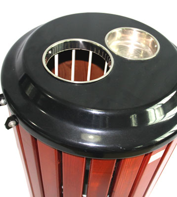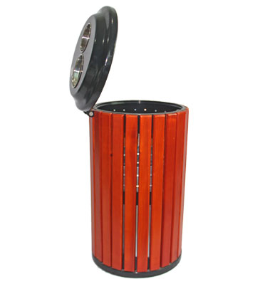 戶外街道鋼木單桶垃圾桶桶身框架采用冷軋鋼板加工制作,表面經酸洗磷化噴塑處理。四面鋼木部分可選用防腐木、進口山樟木或塑木。