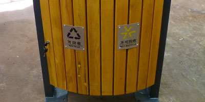 • 產品材質:環保鋼木分類垃圾桶定制可選進口實木(防腐木.紅胡桃.山樟木等)、鋼結構、塑木等。