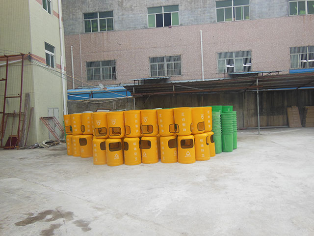 玻璃鋼垃圾桶桶身和內膽部分,采用高級玻璃鋼材質一次成型,經過打磨、除塵 、噴漆等一系列后期工藝然后出成品。