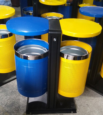 鋼制烤漆分類垃圾桶桶頭圖!