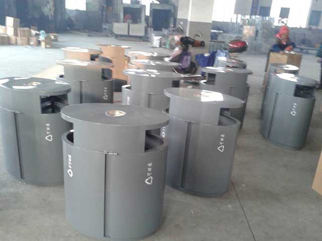 欣方圳戶外鋼板分類垃圾桶靜電粉末噴涂工藝,雙層防銹,漆面色澤耐久;!